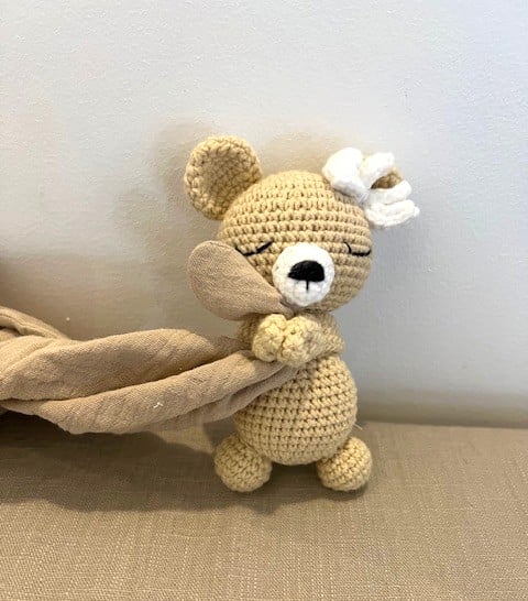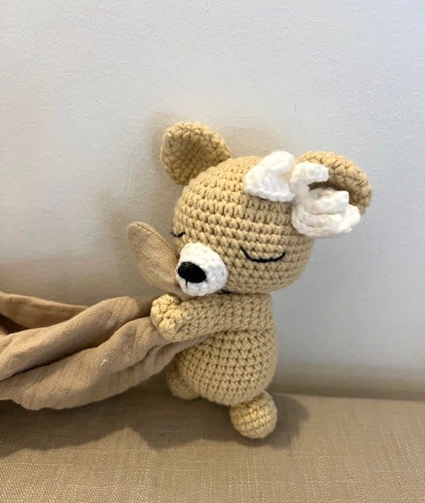 This sweet little bear is lovingly handmade using the Japanese amigurumi technique, where crochet stitches come together to create soft, expressive characters full of charm.
