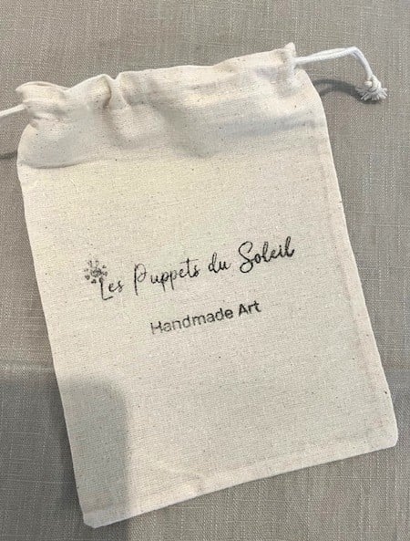 Each amigurumi from Les Puppets du Soleil is carefully presented in a beautiful cotton packaging bag adorned with our logo — a small, thoughtful detail that makes it perfect as a newborn gift or a keepsake for years to come.