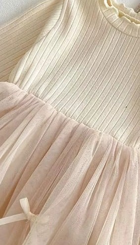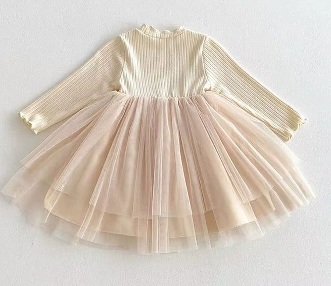 A soft and elegant dress with a ribbed cotton top and a light tulle skirt.