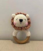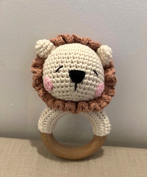 Handcrafted Crochet Lion Rattle Wooden Teether