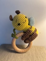 Yellow Bee Baby Rattle Wooden Teether